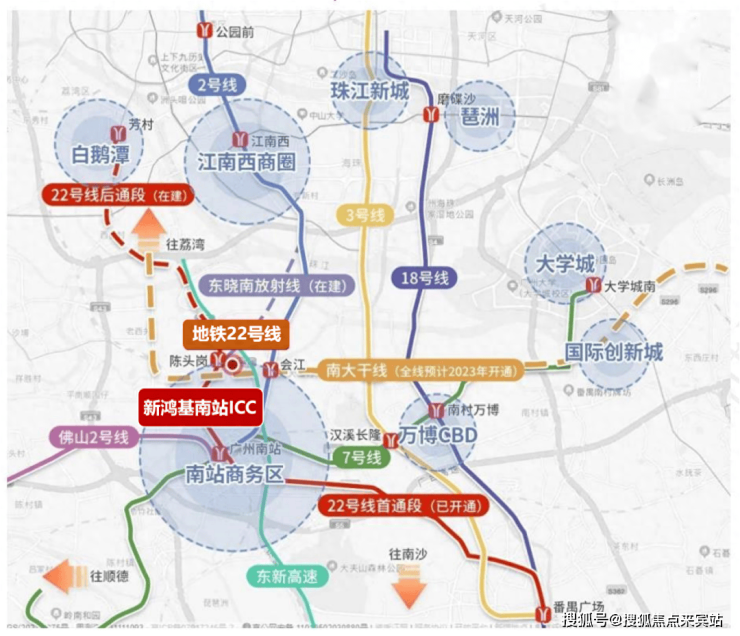 择址广州南站以TOD模式打造世界级综合地标,南站ICC耗资超100亿,是全球第五座、大湾区第二座ICC,规划发展直接对标“维港门廊”香港ICC;