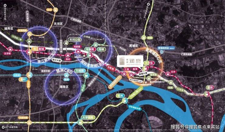 作为广州南北发展脉络交汇核芯,华润置地·黄埔润府坐拥5/7号线换乘站——大东沙站。直达广州东西、南北各大CBD与产业新城。