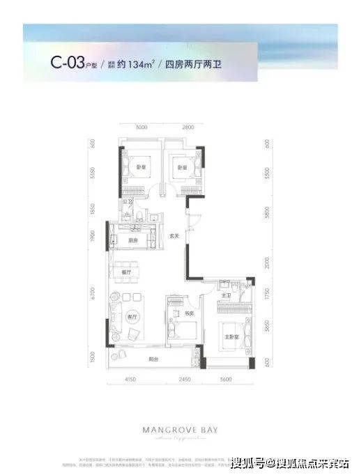 C03户型134平4房2厅2卫:方正紧凑格局,合理精研每一寸空间;独立私家书房;约6.6米宽阔景观阳台;客厅、餐厅连通阳台;主卧飘窗。