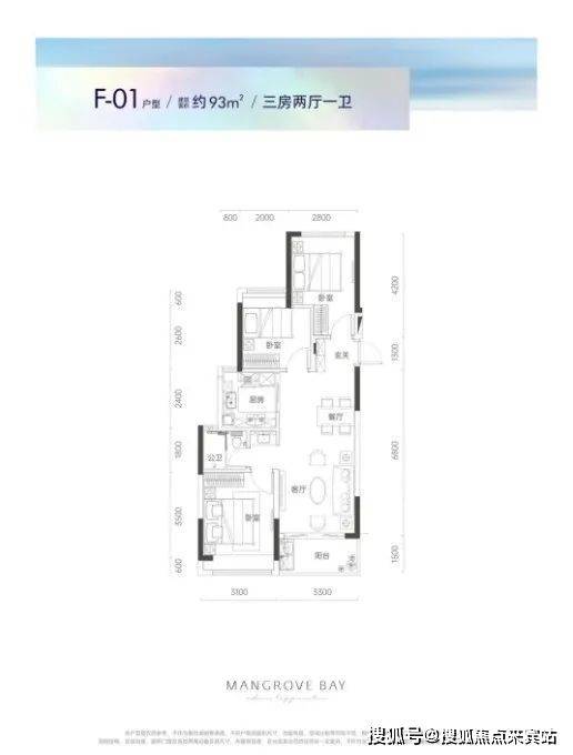 F01户型93平3房2厅1卫:客厅、餐厅连通阳台,自然采光充足;宽景竖厅,空间开阔;主卧独立卫生间,隐私雅奢生活;动静干湿分离。