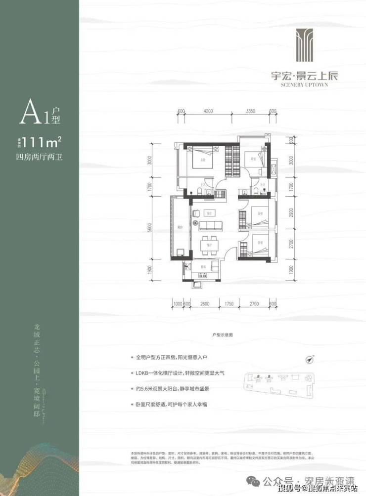 龙岗中心城【宇宏景云上辰】于2025年4月30日取证入市,本次加推2栋,共199套房源,面积有100㎡的3房2卫,111-118㎡的4房2卫户型。