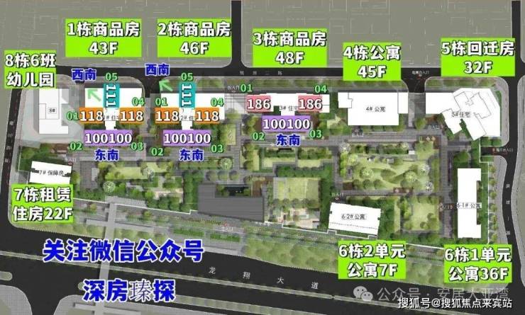 总规划1135套,其中商品房557套,回迁房214套,公共租赁住房及租赁型人才住房102套,商务公寓262套,3栋住宅是3梯4户,1/2栋住宅3梯5户,地下3层,停车位1548个,车位比1:1.36。