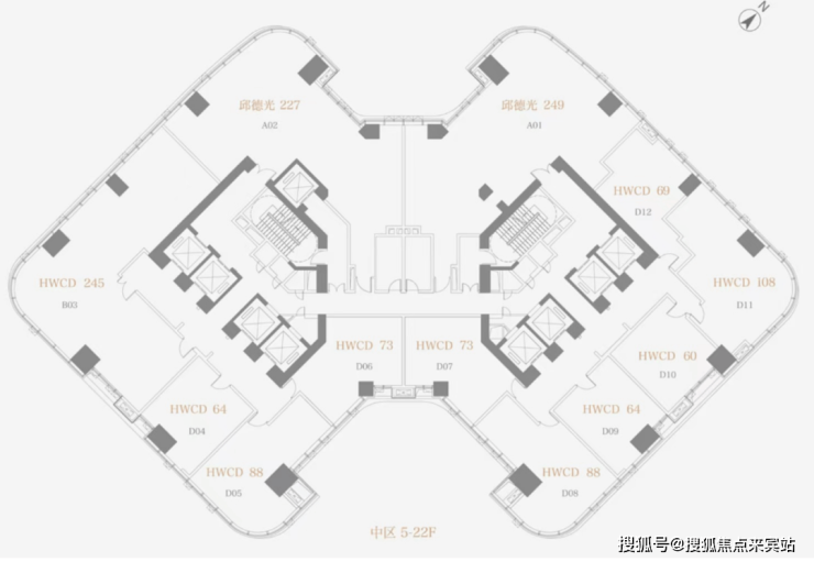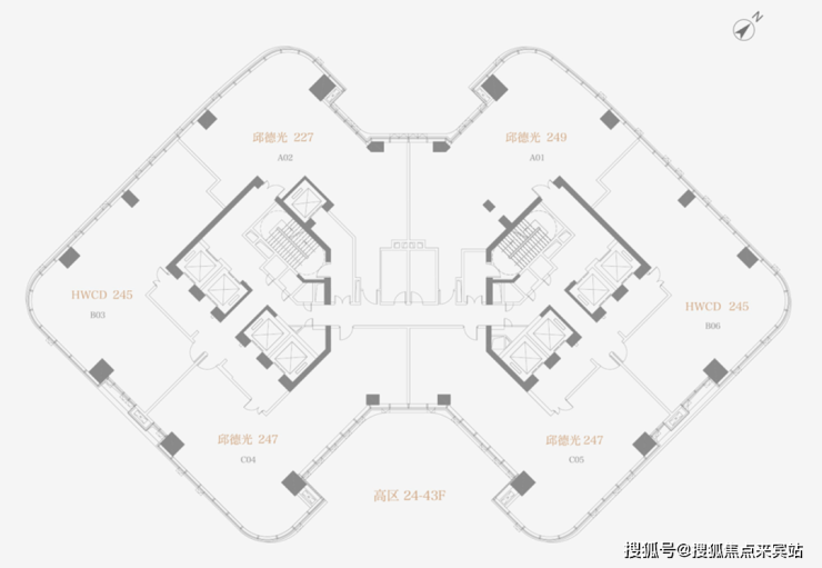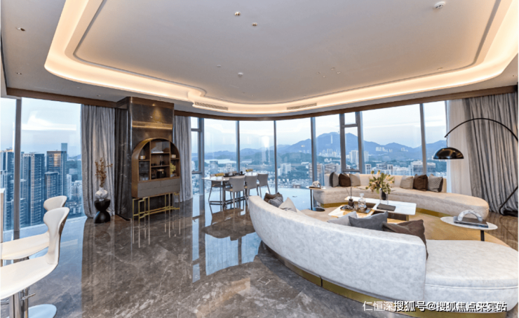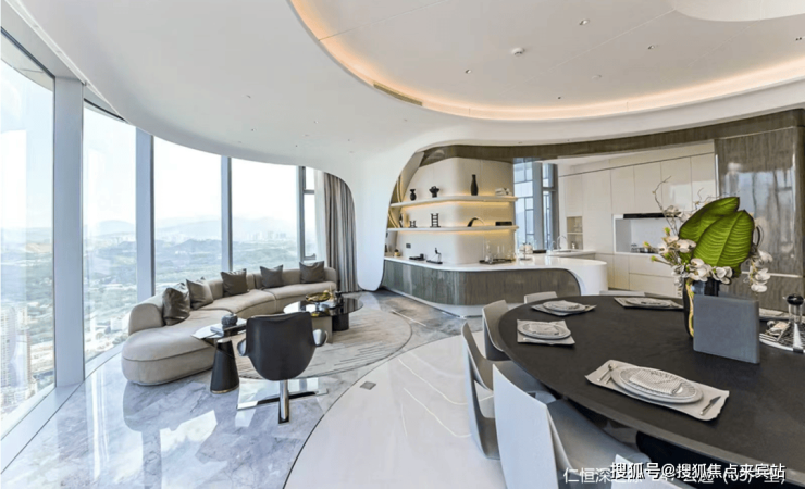 方胜纹双核心筒的设计使得整栋建筑更加高效和私密,并实现了双专梯电梯入户,为塔尖人群高效的工作和私密的生活而服务。转角处曲线设计,拓宽了整个建筑界面,使得建筑拥有270°转角无柱开放式观景视野。是塔尖人群拥揽深港的极佳观景台,足以盛放您帷幄城市的雄心。