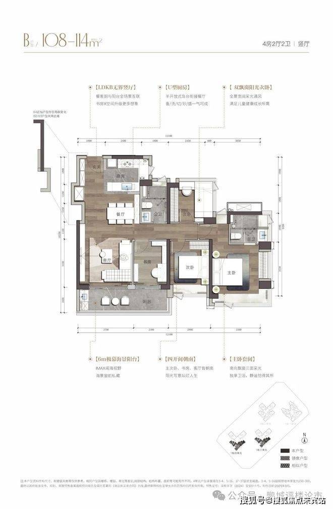 建面约108-143㎡海幕纯四房,臻藏级南向湾海视野,LDKB人性化动线设计,格局方正、高实用率,打造独立玄关、双飘窗主卧、步入式衣帽间等个性化空间。