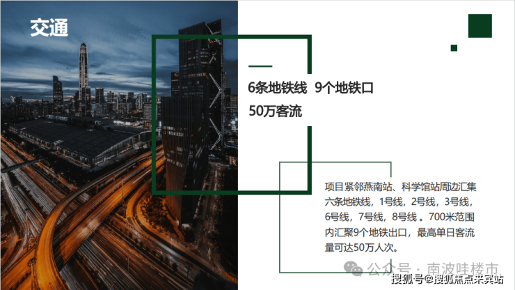 三地铁交汇地铁物业,0距离燕南地铁口(2号线燕南站),约400米到1号线/6号线科学馆站,片区800米内汇集1、2、3、6、7、9、11号七条地铁线,50多个地铁站口。