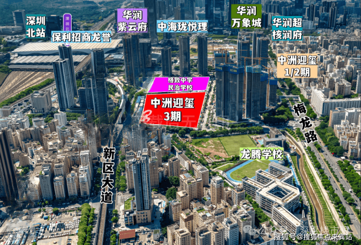 中洲迎玺花园,原名中洲黄金台,是一个集多种优势于一体的住宅项目。它位于深圳市龙华区龙华大道与民丰路交汇处,由深圳市中洲投资控股股份有限公司开发。中洲迎玺地理位置优越,毗邻北站总部基地,该基地已经行城市一体化设备升级,以深圳北站为核心,新增“城市超核”,形成“双芯”结构。