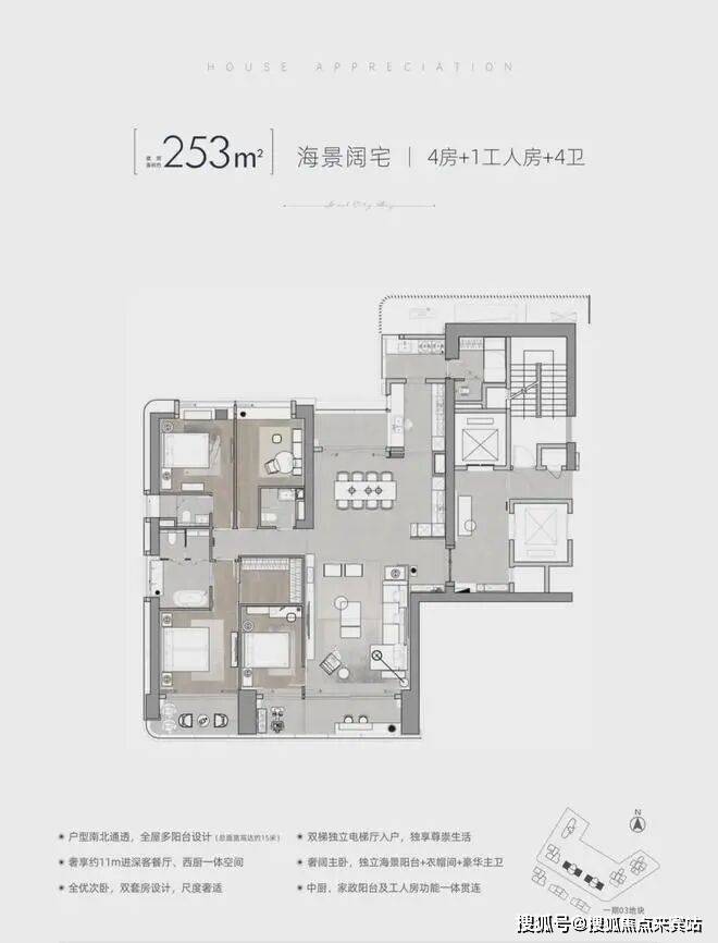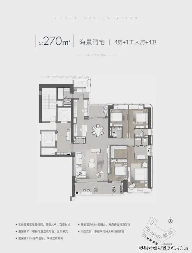 建面约122-125㎡3+1多功能空间:该面积有3个户型,西南朝向看红树林湿地及海景;西北朝向看绿地公园及城市景观。
