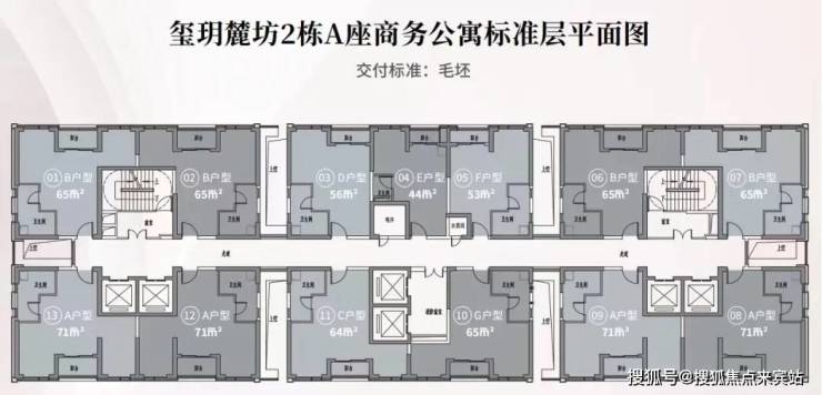 目前在售商务公寓户型建面约44-71平