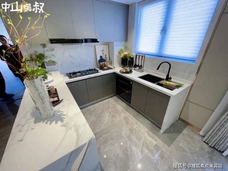 左手边的厨房被开发商设计成开放式U型大厨房,墙体打掉后,视野空间一下变大。