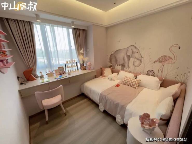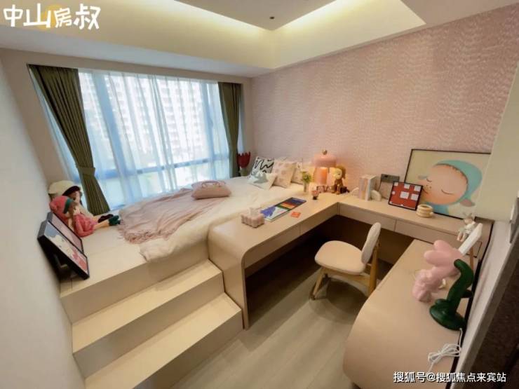 公主房有独立书桌的同时,还有观景飘窗,床还是环抱式设计,让人安全感满满。