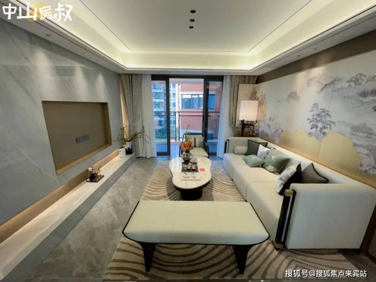 客厅为新中式的设计,加上连通约7米长的景观大阳台,极致的低调奢华感涌现。