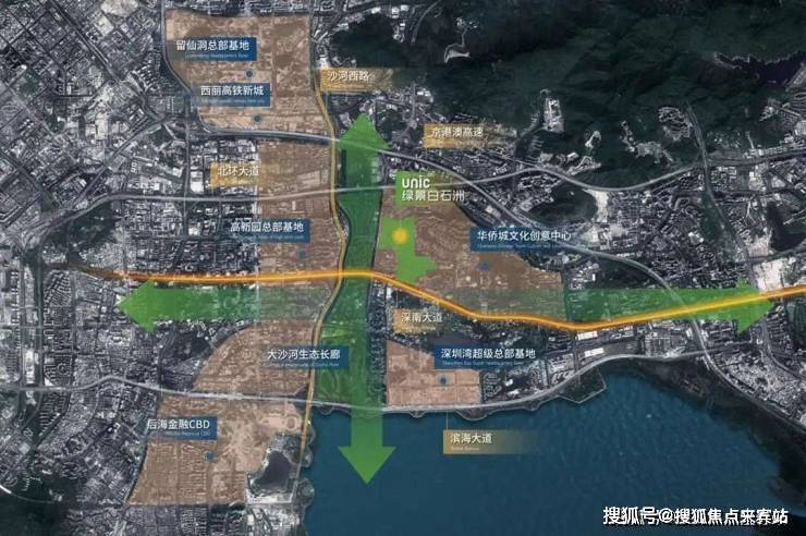 绿景白石洲位于深圳核心位置南山区的华侨城片区,深圳城市发展主轴——深南大道与大沙河创新走廊十字交汇点,依托华侨城人文艺术城区,链接后海总部基地、深圳湾超级总部基地、留仙洞总部基地、高新园总部基地四大总部基地。