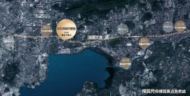 在伦敦、纽约这样的超级城市,其城市主轴的黄金分割点上均屹立着城市超级影响力的项目,如伦敦金丝雀码头、纽约中央公园,而深圳的发展主轴深南大道从罗湖中心到前海中心,绿景白石洲正处于黄金分割点之上。