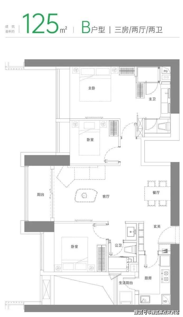 ③ 125㎡3房2卫:809套(A户型646套+B户型99套+C户型64套)