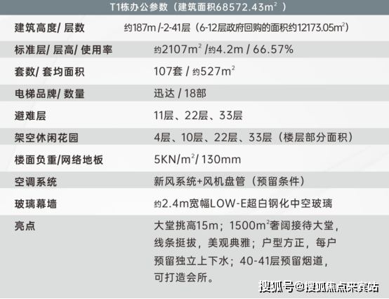 一般市场甲级写字楼层高10米左右,面积不足1000㎡,本项目T1栋约187米云端国际办公写字楼,商务大堂独具约15米挑高中空、约1500㎡奢阔商务大堂,匹配世界级办公体系。