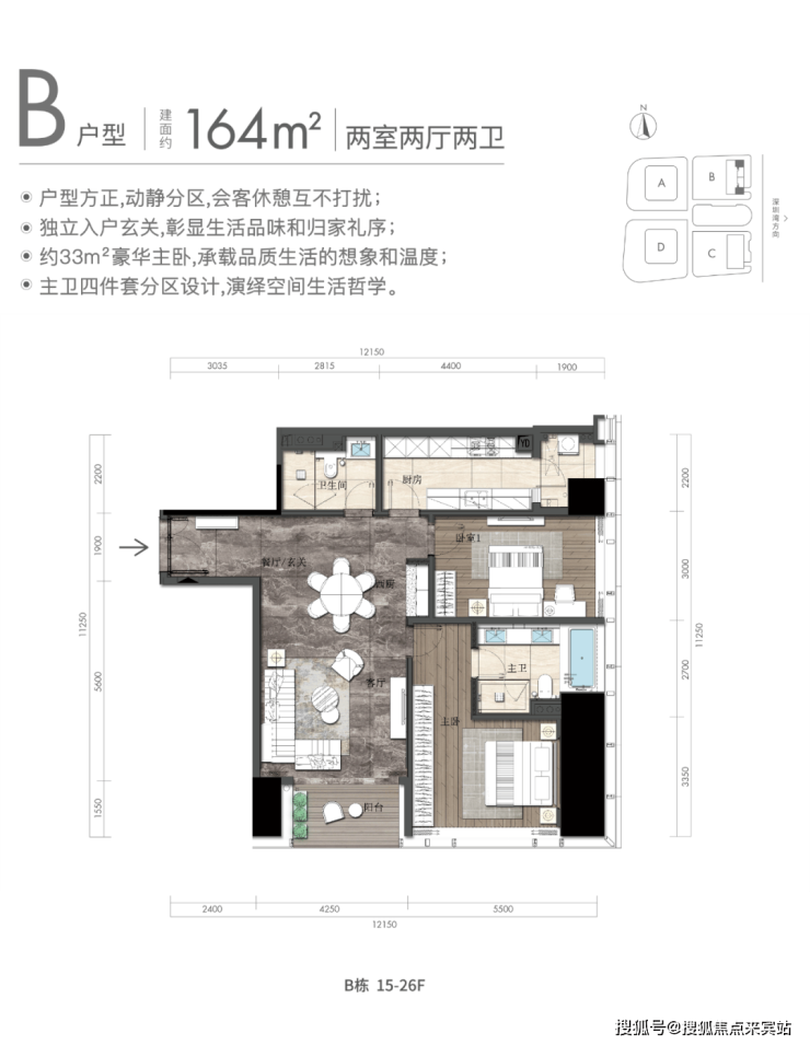 恒裕深圳湾的商务公寓,其户型设计也遵循了深圳豪宅产品的空间布局。