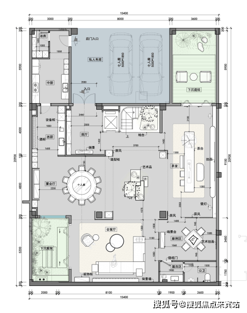 负一层下沉庭院周边设工人房、家政间,储物无忧;
