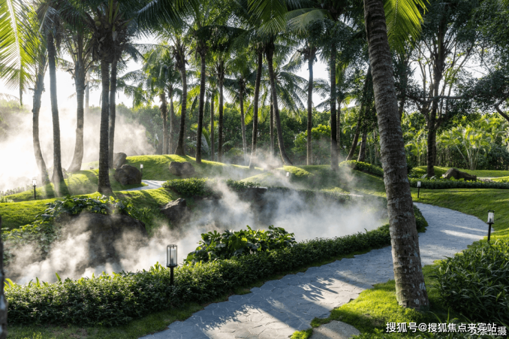 园林设计以杭州法云安缦为蓝本,师法自然、禅意幽远。悉心挑选 40 种热带特色植被,葱郁繁茂、四季繁花。更珍视原地块 4 棵百年古树,以此为核心景观节点,古木参天、岁月沉淀,与新植交相辉映,构筑宁静深邃、自然野趣的园林画卷,让每一步归家皆为穿越诗意秘境的悠然旅程。
