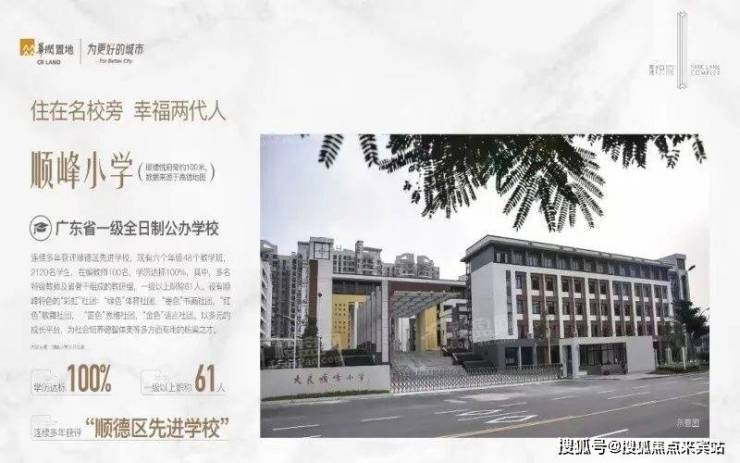 华润置地顺德悦府门口就是省一级的顺峰幼儿园、顺峰小学和顺峰初级中学,这三所学校在顺德家长圈里的地位不用多说,中考成绩常年霸榜。