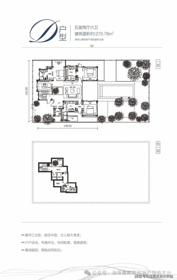 D户型:五室两厅六卫/建面约275㎡