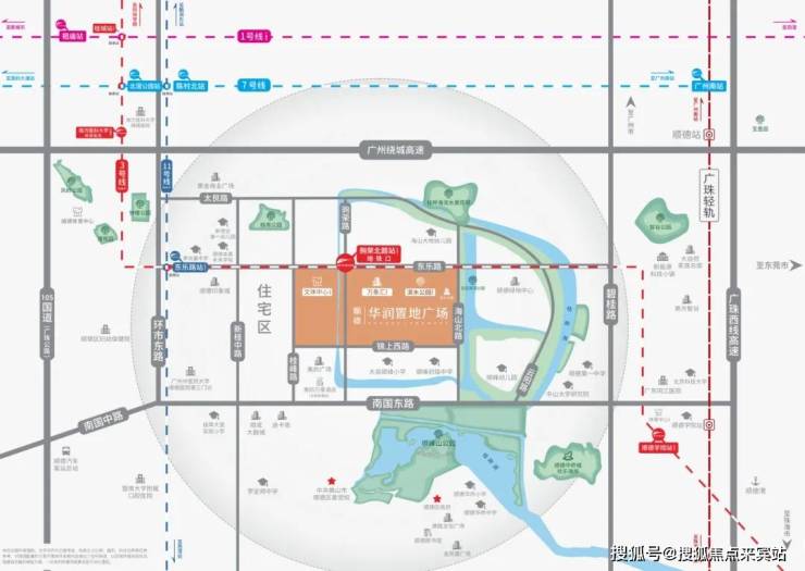 打造集高端商业、文体中心、住宅、公园、学校为一体的约50万方城芯综合体PLUS,打造顺德城市新名片。