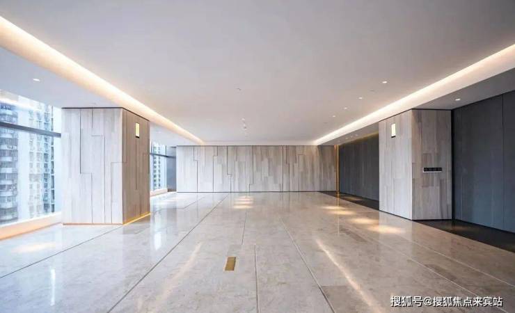 【气度】9.7米层高,程绍大师定制级艺术大堂;石材、黑钛、灯光的合理结合,典雅大气的大师定制级电梯厅及电梯轿厢;公区的每一处均甄选进口用材,彰显礼遇气度及企业恢宏形象。