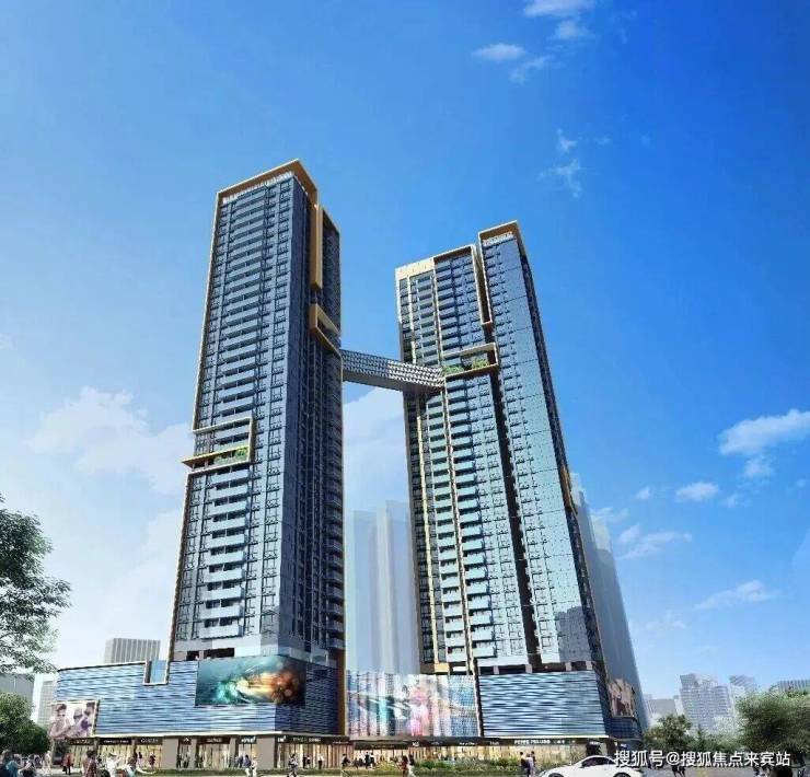 【豪宅形象】宝中人居标杆代表品质力作,区域唯一国际公建化立面住宅项目作为宝中区域豪宅典范代表,项目以国际化现代简约立面,打造独特尊贵形象,同步通过空中廊桥打造的空中云厅连接互动,使得建筑相映成辉,为业主提供无障碍观景平台。