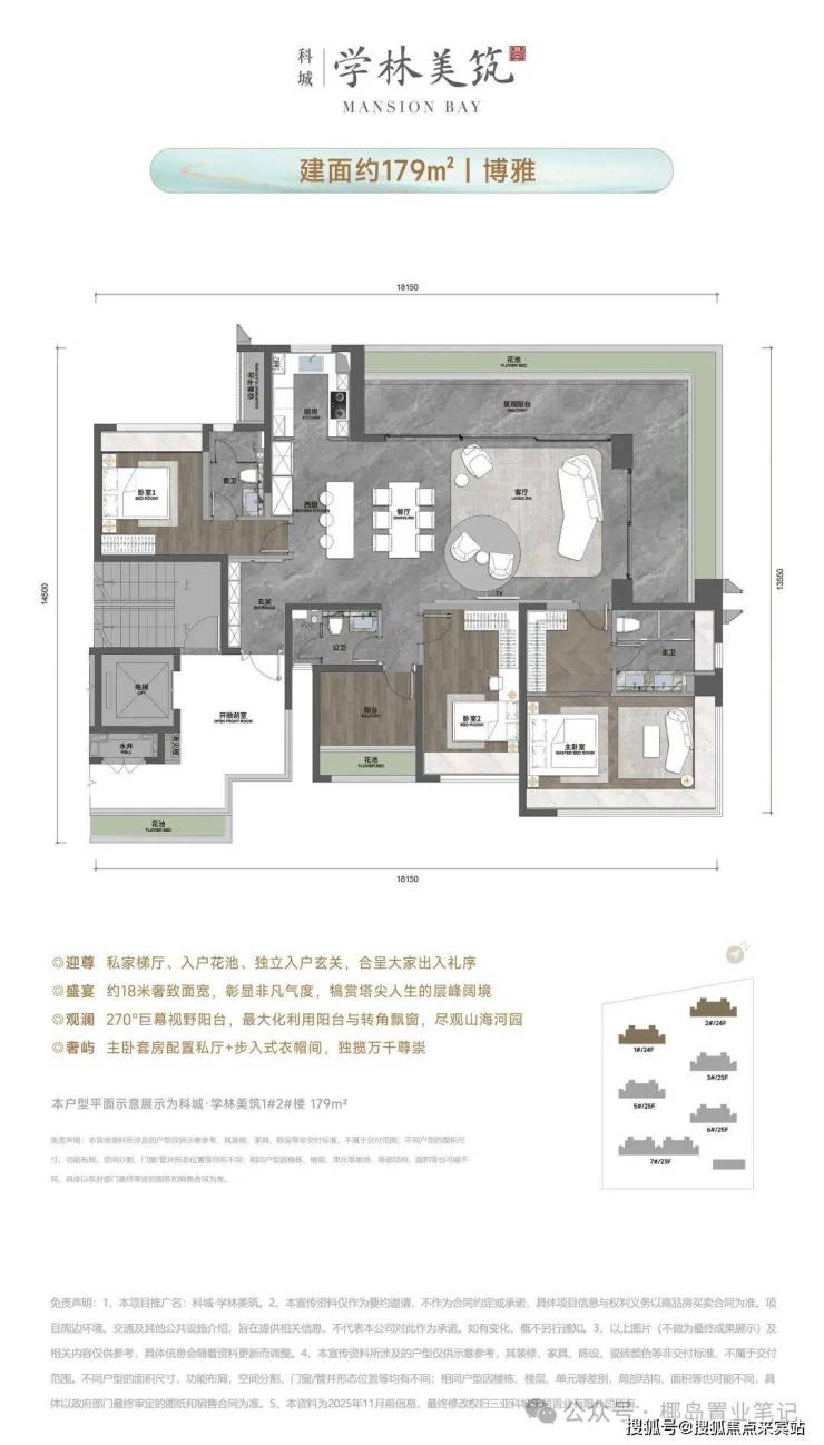 本宣传资料仅为项目信息公示用途,不构成《商品房买卖合同》的要约或承诺。宣传内容中涉及的项目规划、周边配套、政府规划、商业资源、教育资源、交通配套、户型面积等相关信息,最终均以政府相关部门审批文件及项目实际交付情况为准;