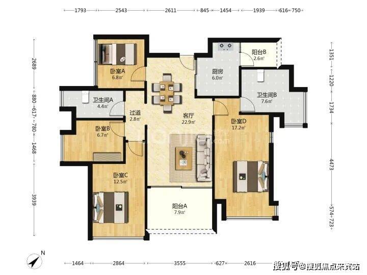 方正横厅设计,南北通透,全屋多飘窗,