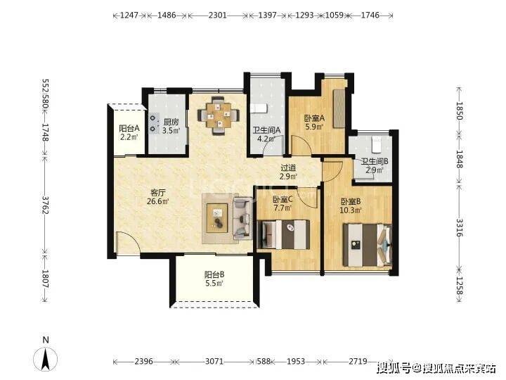 小区:豪方天际·88㎡·南北通透3房2卫;