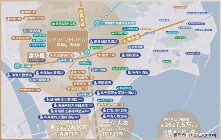 毗邻三大国门口岸,(驾车)约9分钟直达拱北口岸无缝过关澳门;毗邻前山站、珠海站两个城轨高铁站,更有广州地铁18号线延长线(规划中),通行全国;