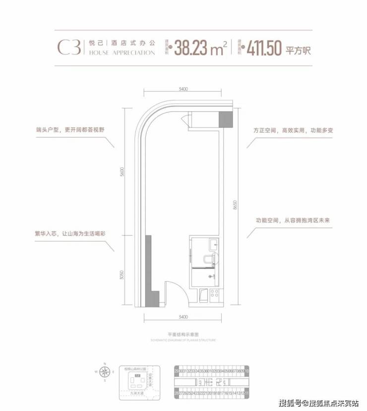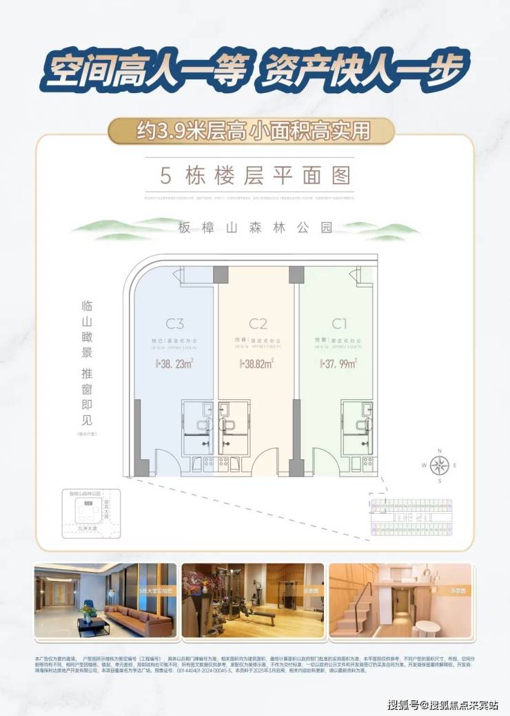 首推5栋建筑面积约38-39㎡高定资产,约3.9米层高小面积高实用,城芯优质资产。