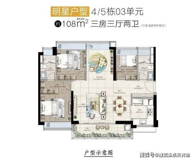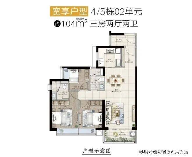 :可能为三房设计,空间布局紧凑合理,功能分区明晰,适合一家三口或小家庭居住,满足刚需购房者需求。