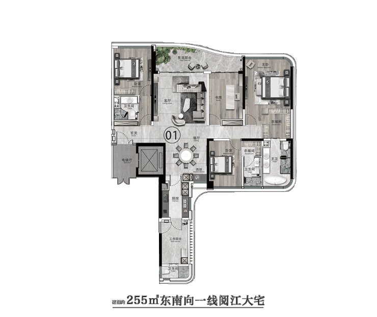 【艺术栖居】梁志天设计集团执笔室内空间,HWCD事务所打造3000平方米"星环会所",SED新西林景观以"生态环"概念重塑园林秩序。恒温泳池悬浮于江景之上,总裁会客厅与私宴厅镶嵌其中,形成云端社交场域。每户标配约12平方米步入式衣帽间,LDKG一体化空间布局打破传统界限,使255-285平方米户型皆成流动的艺术展厅。