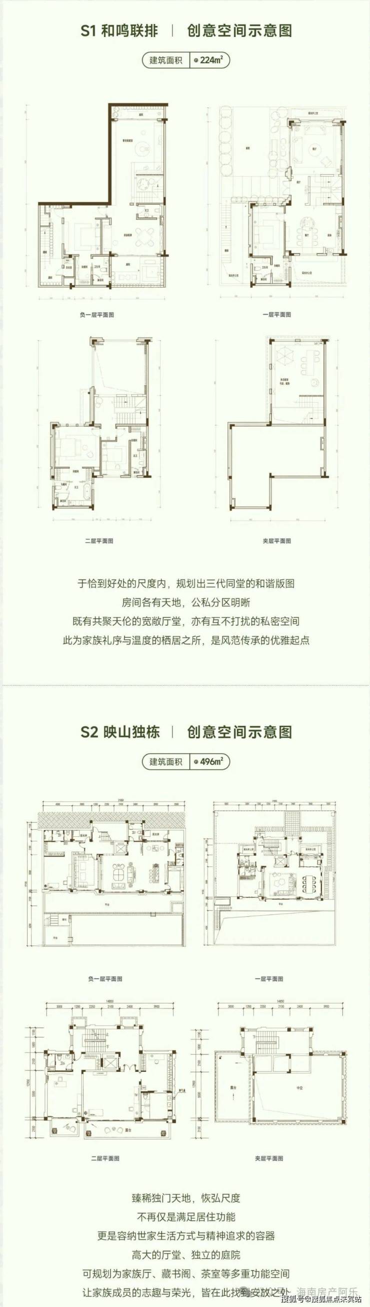 【在售户型】:建面约224㎡联排/496㎡独栋