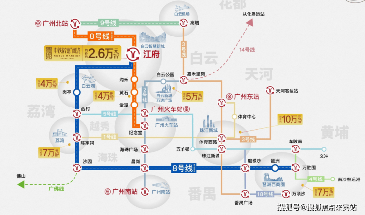 家楼下就是双地铁8号线北延段/北延段支线【江府站】,目前工程进度2%,未来坐地铁6站珠江新城CBD,10站北京路商圈、直达广州市政府,每年达50-100万人流量。