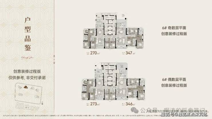270/273㎡户型特点: 一层两户,3T2户独立梯厅互不扰; ·5.7*11.65m直厅宽敞大气; ·客厅、阳台、众数套房可正南望江及 琶洲会展; ·南北对流双阳台; ·工人梯独立动线,保障豪宅私密性; ·主卧270°景观转角飘窗; ·800mm飘窗可打; ·奇数层32㎡6.6m通高平台空间;