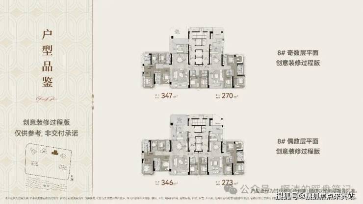 270/273㎡户型特点: 一层两户,3T2户独立梯厅互不扰; ·5.7*11.65m直厅宽敞大气; ·客厅、阳台、众数套房可正南望江及 琶洲会展; ·南北对流双阳台; ·工人梯独立动线,保障豪宅私密性; ·主卧270°景观转角飘窗; ·800mm飘窗可打; ·奇数层32㎡6.6m通高平台空间