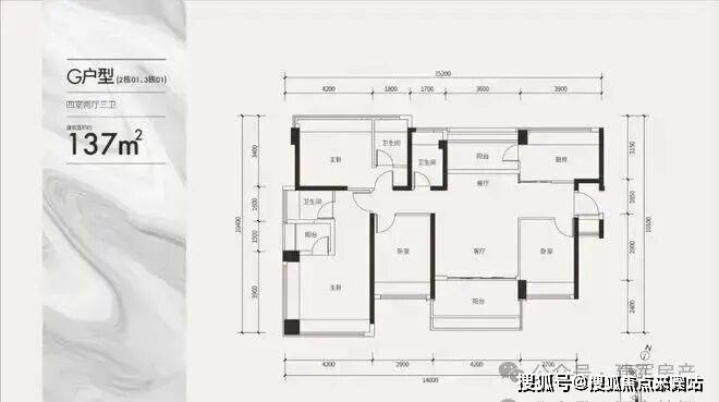 项目户型:108/137㎡奢阔四房