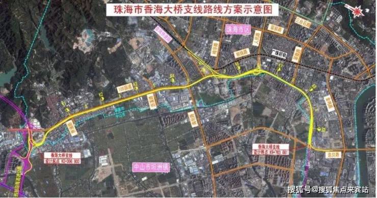项目北起坦洲互通立交,向南至梅华路后,继续向西经坦洲镇、珠海金湾、斗门区,先后与广珠西线、中山西部外环高速、江珠高速公路相交,终点止于斗门区湖心路。预计大桥将在2021年建成通车。
