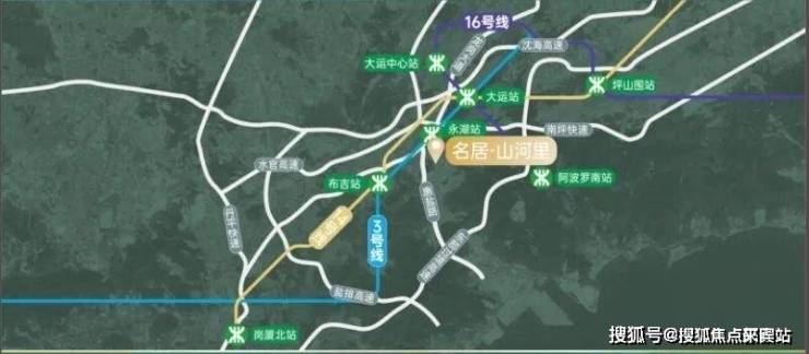 『多维路网』 立体交通触达世界立体交通构建高效湾区生活圈,赋予先于世界的出行权。l “三地铁”自由出行3号线:约200m即永湖地铁口,两站到大运,8站到罗湖14号线:两站达大运,7站抵达布吉,10站即达岗厦北16号线:一站达大运中心,速联园山街道,抵达阿波罗未来产业园l “三横五纵”多维路网三横:水官高速、南坪快速、沈海高速五纵:龙岗大道、丹平快速、盐排高速、惠盐路(部分已建成)、东部过境高速(在建中)