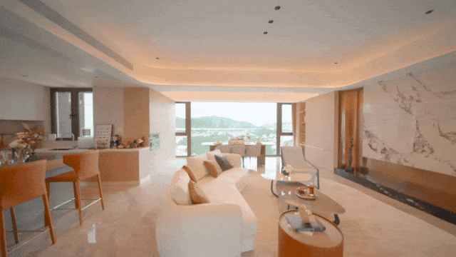 其次,将层高拉至约3.15米,搭配全景落地窗设计,大大提升室内空间感,实现采光更好、通风更强、景观更广的多重效果。
