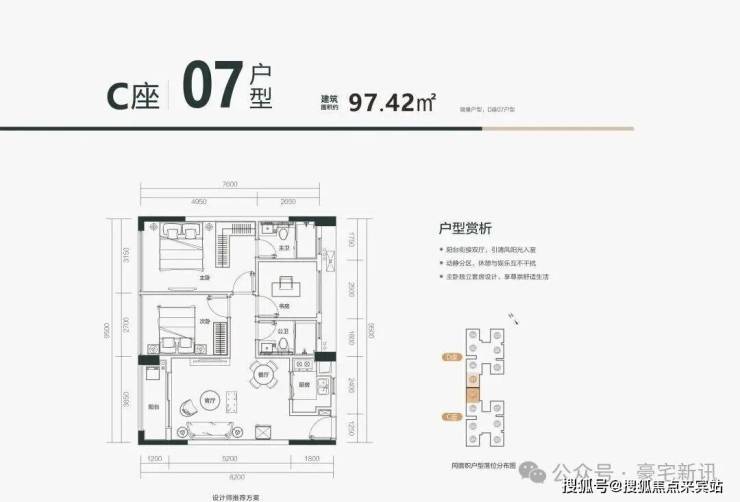 🏡C07户型:约97㎡改善级舒适大三房户型