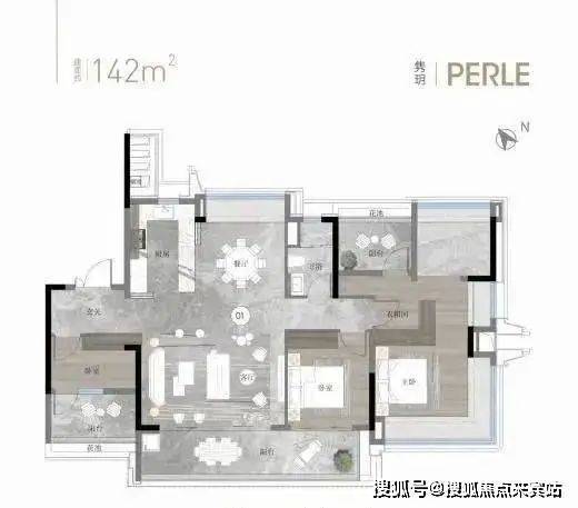 建面约142平方米户型:货量最多,独梯独户板式设计,三面采光,餐客厅和主卧南北对流。