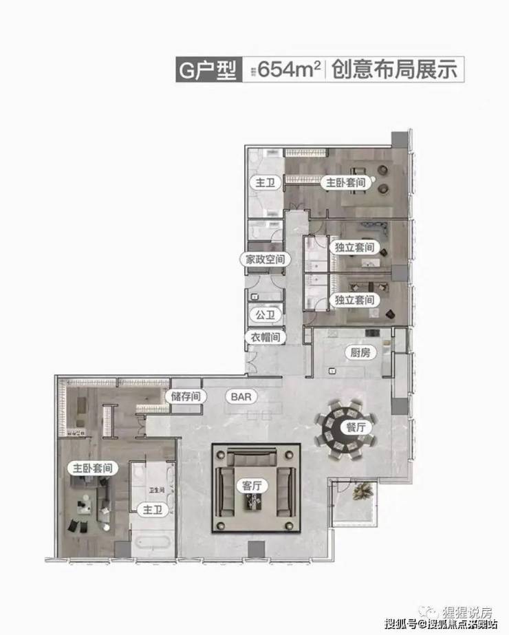 建面约654㎡户型,更是大手笔打造270°江景面,揽获金融城至为阔绰的江景景观。无论处于室内任何空间,都能沉浸于珠江的环抱中。极奢华的空间尺度,足以满足塔尖人群滨江奢居、社交接待等需求。