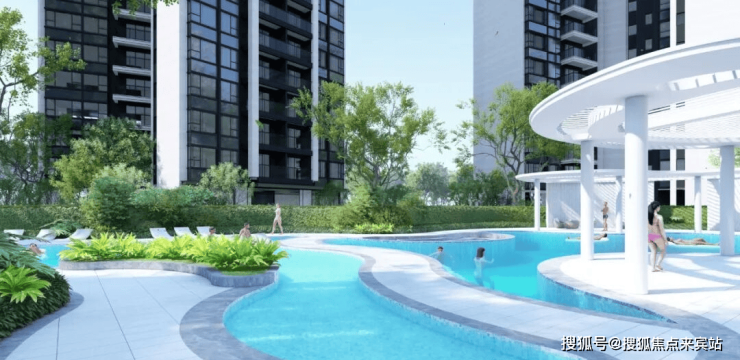 ◎ 约760㎡度假式阳光双泳池,远超片区楼盘泳池配置,与园林景观完美融合,不出小区享受海边度假式体验;