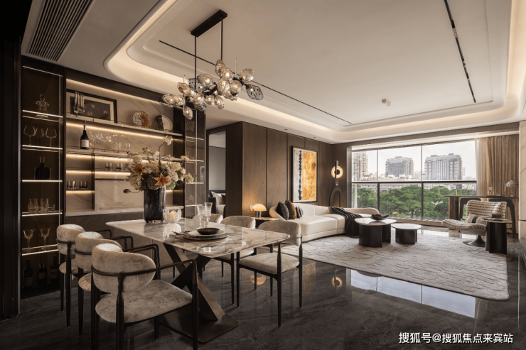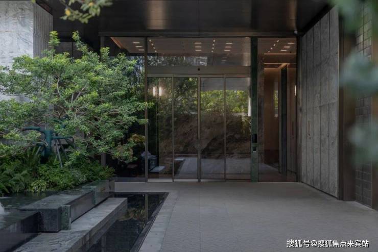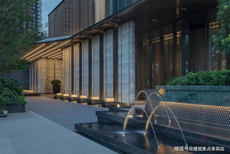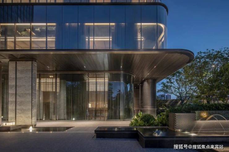 酒店式社区大堂:朝向广场,入口前场、门廊、大堂、内庭院、单元大堂组成的归家动线,配合建筑、景观、室内、标识、灯光一体化设计,汲取糅合后的南洋文化元素细节,把酒店式归家仪式感拉满,彰显非凡气度。