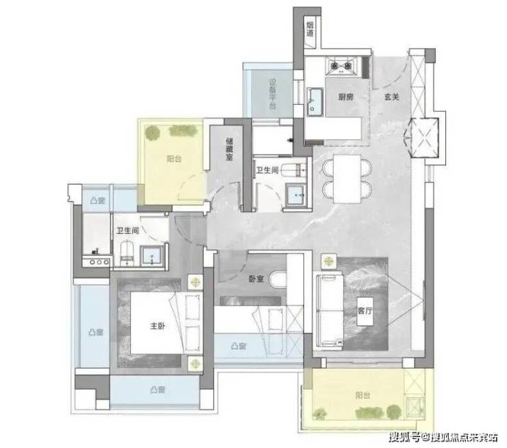 户型设计起始就关注了绿色自然的设计理念,户型均实现多开间朝外,争取采光通风资源,所有功能空间均能够自然通风采光。