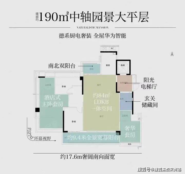 户型三开间朝南,为了获取更大面宽视野,项目还将全屋的窗地比做到38%。