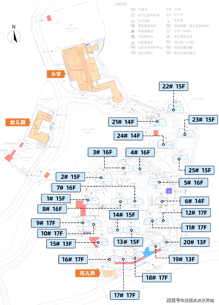 整个项目分成南北两个地块,其中南侧地块分布20栋住宅